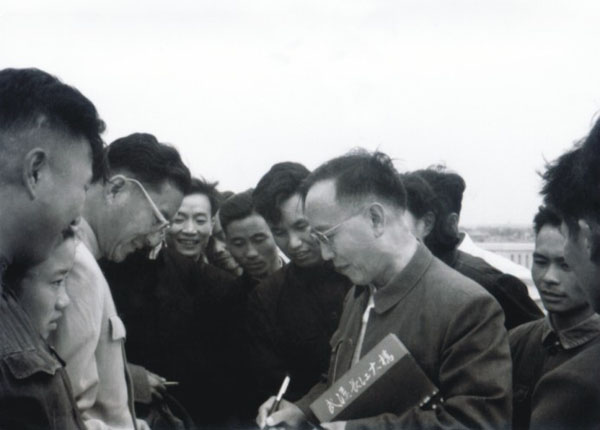 1957年(nian)9月27日(ri),全國(guo)人(ren)大(da)常委(wei)會副委(wei)員(yuan)長(zhang)郭沫若視察武漢長(zhang)江(jiang)大(da)橋并在(zai)紀念冊上簽名(míng)。